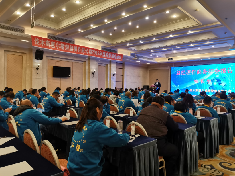 2019年11月25日,值此辭舊迎新之即,佳木斯惠爾橡塑股份有限公司2019-2020年度商務會議在四川成都圓滿召開,來自全國范圍的100多家經銷商代表歡聚一堂,共謀發(fā)展。會議總結了2019年營銷工作,直面矛盾問題,科學預判形勢,就2020年營銷工作進行了部署和落實,會場充滿熱烈喜慶、奮發(fā)向上的氣氛。